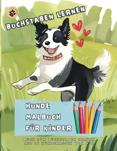 Hunde Malbuch für Kinder | Buch zum Buchstaben lernen mit 26 Hunderassen von A-Z: Von A wie Australian Shepherd bis Z wie Zwergschnauzer - spielerisch lernen mit Hunden