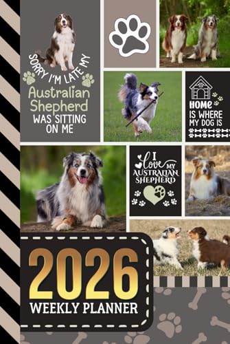 2026 Weekly Planner: Hardcover / 6x9 Dated Diary With To Do List - Habit Tracker - Notes Section / Agenda Gift / Australian Shepherd Dog - Funny Quote Animal Art Cover