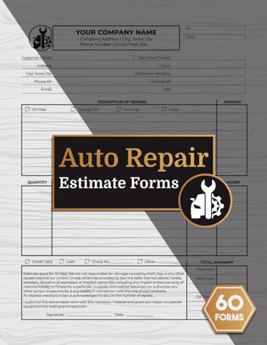 Auto Repair Estimate Forms: for Body Shop, Mechanics & Garages | +60 Forms, 120 Single-Sided Pages