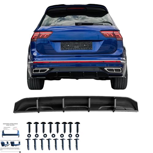 Bakre förkläde bakdiffusor kompatibel med VW Tiguan R Line Mk2 Facelift 2020 till 2024 svart glänsande
