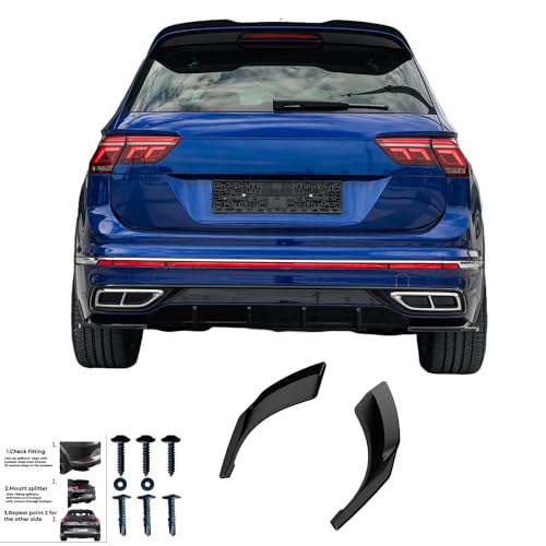 Bakre splitter kompatibel med VW Tiguan R-Line Mk2 Facelift 2020 till 2024 2 stycken svart glänsande