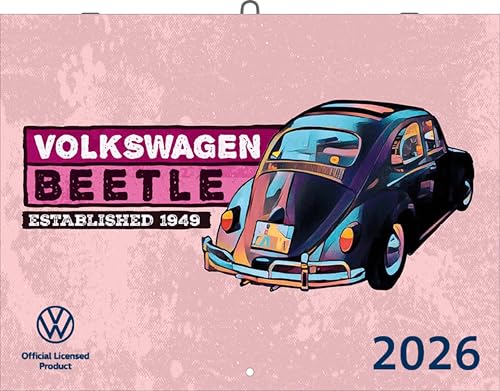 arti - VW Broschürenkalender 2026 - im Format 28 x 21 cm, mit Illustrationender VW Klassiker, Käfer, Bulli, Perfekt als Wanddekoration für Auto Fans