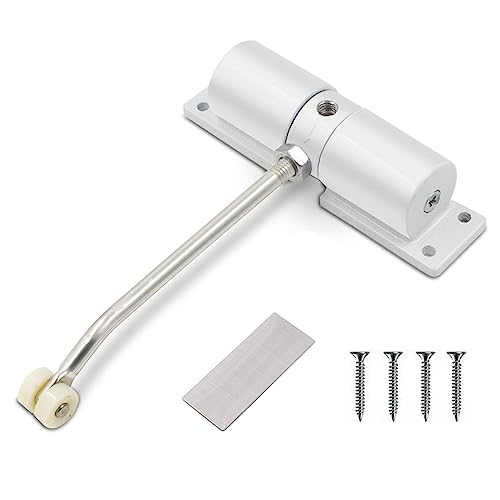 POWERTOOL Automatisk dörrstängare, justerbar fjäderbelastad, ytmonterad, brandklassad, tyst, passar höger/vänster svängdörrar, zinklegering, vit