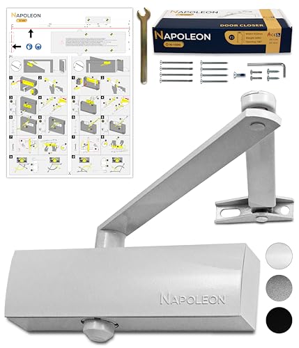 NAPOLEON N-1000 Robust Automatisk Dörrstängare - EN1154/EN1634 Normer - Kommersiell & Bostäder - Dörrar från 20Kg till 60Kg Storlek 3 - Borrningsmall - Enkel och Snabb Installation (Silver)