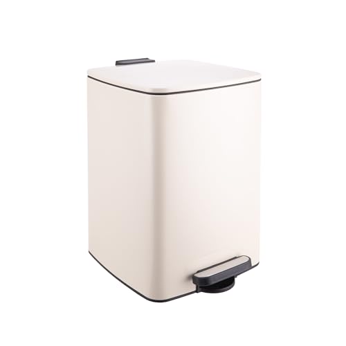 Relaxdays Soptunna kök, 20 liter, automatisk sänkning, avtagbar innerhink, matt metall, fyrkantig pedal, beige