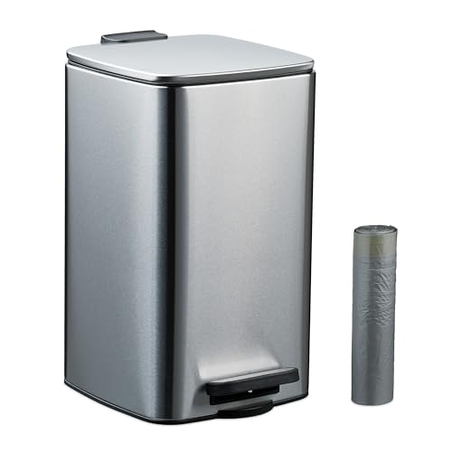 Relaxdays Kosmetikabehållare, 8 L, automatisk sänkning, avtagbar innerhink, metall, badrum soptunna, inklusive soppåse, silver