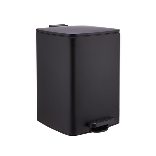Stardis 3 liters pedalhink rostfritt stål svart matt med automatisk sänkning fällbart lock tyst stängning softclose med inre hink kosmetishink soptunna soptunna badrum