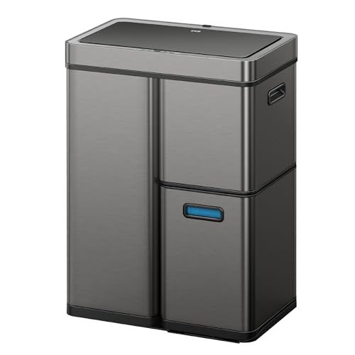 EKO Vintage 50 l/13,2 gallon rörelsesensor papperskorg, dubbla fack 32 L + 18 L rostfritt stål kök soptunna, beröringsfri automatisk avfalls- och återvinningsbehållare med lock för hem eller kontor