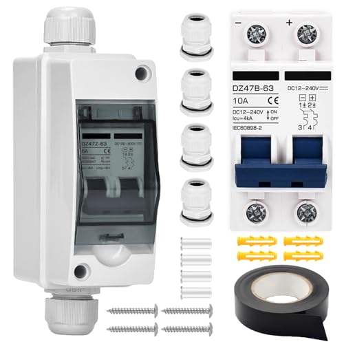 PV automatsäkring 40A, IP65 kretsbrytare solsystem, automatisk likström, 2-polig DC 12 V-240 V frånkopplingsbrytare med vattentätt hölje, PV solsystem skyddsbrytare