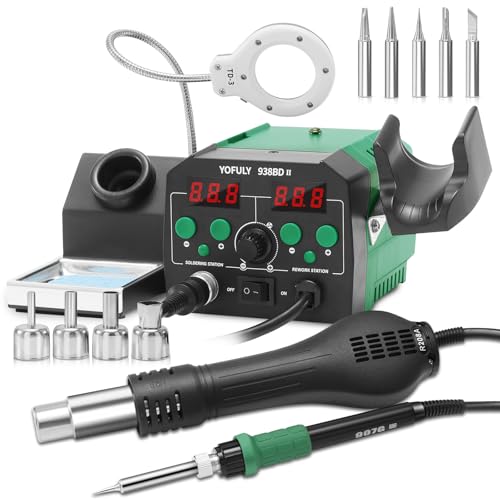 Yofuly 775 W lödstation, 2-i-1 varmluft lödkolvsats med påsydda hjälphänder, avlödningsstation för SMD-lödning, justerbar temperatur och luftvolym, autostart/stopp
