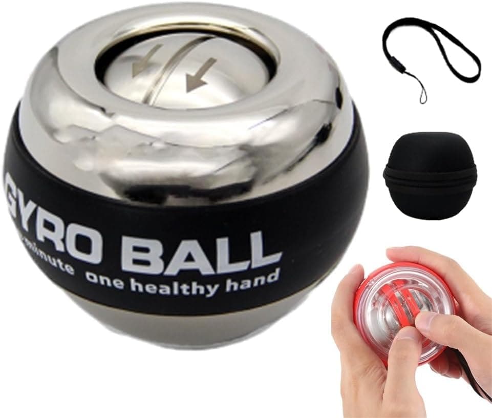 BeSokar Gyroball, handledsträningsboll, autostart, 5-stegs motstånd/ljusstyrning, gyroskopisk underarmstränare, för att stärka armar, fingrar, handleder (metallhus)