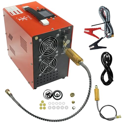 TUXING Pcp-luftkompressor, LCD-display Version Auto-Stop 4500Psi/30Mpa, Olje-/Vattenfri, Inbyggd transformator/Dräneringssystem Pump för PCP-luftgevär och luftpistoler (TXET063-1)