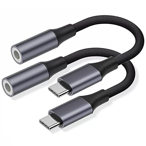 2 st typ C till 3,5 mm hona hörlursadapter, USB C till Aux Audio Dongle kabel hörlursuttag omvandlare kompatibel med iPhone 15,Samsung Galaxy