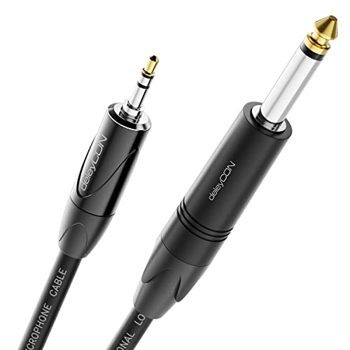 deleyCON 3,0m 6,35mm Mono till 3,5mm Stereo Jackkabel AUX - Studiokvalitet - Tillverkad av ren OFC-Koppar (AWG24) - För Elektrisk Gitarr Bas Förstärkare Blandare Keyboard