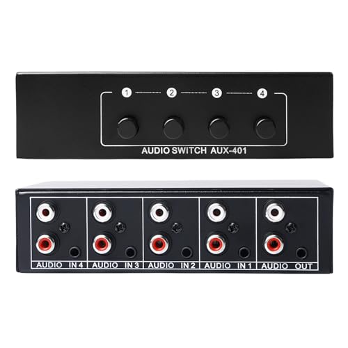 AUX ljudbrytare, ljudvideo splitter 4-i-1 out, ljudswitch, ljudurvalslåda, dubbelriktad ljudomkopplare 3,5 mm Aux + RCA L/R, passiv ljudbrytare för hörlurar telefon ljudsystem