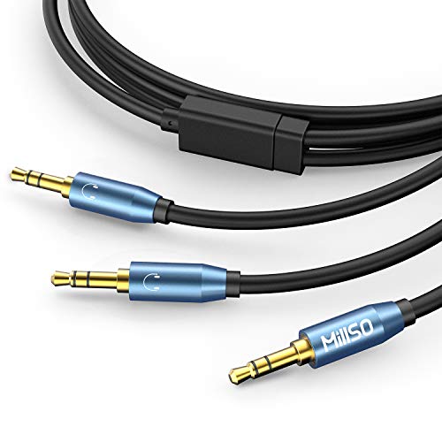 MillSO ljuddelningsuttag Y-adapter 3,5 mm hane till 2 x 3,5 mm hane med guldpläterade kontakter Audio Aux Splitter för mobiltelefon, PC, högtalare och hörlurar -2,4 m