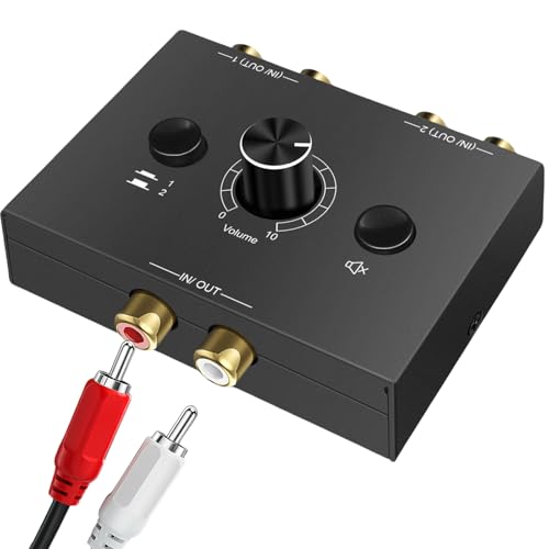 RCA Cinch Stereo Audio Switch 2 (1)-IN-1 (2)-out, R/L stereo ljudomkopplare med volymkontroll, dubbelriktad aux-ljudväljare strömbrytare splitter box för CD-spelare datorhögtalare