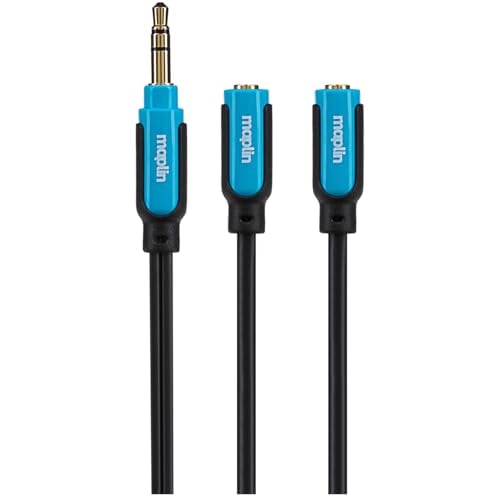 Maplin 3,5 mm Aux Stereo 3-polig kontakt till Twin 3,5 mm honkontakt splitter kabel 0,25 m