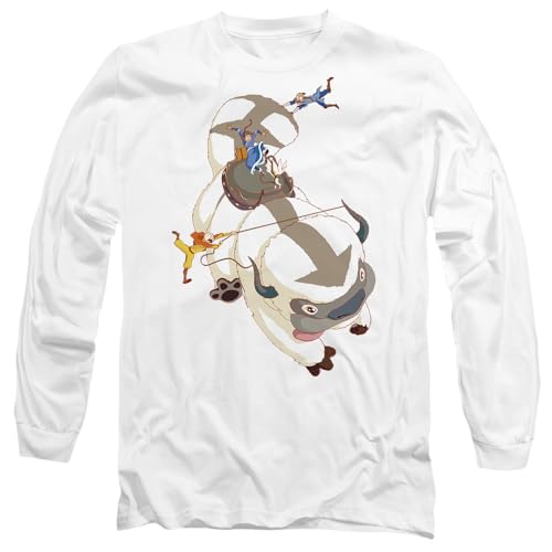 Avatar The Last Airbender Hang On Appa Långärmad T-shirt för män, vit, XX-Large, Vitt, XXL