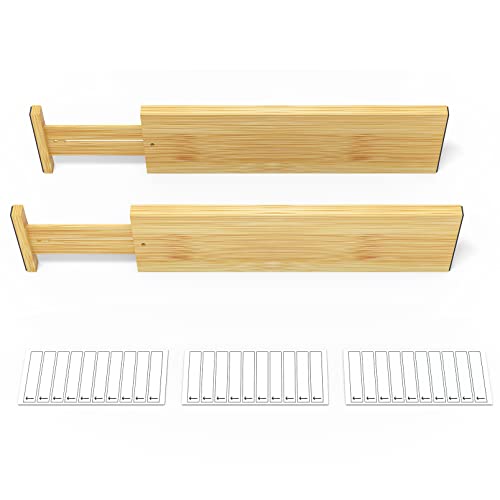 SpaceAid Bambulåddelare med etiketter, justerbara lådor för kök, expanderbar organisation för hem, kontor, byråer och badrum, 6 avdelare (43-55 cm)