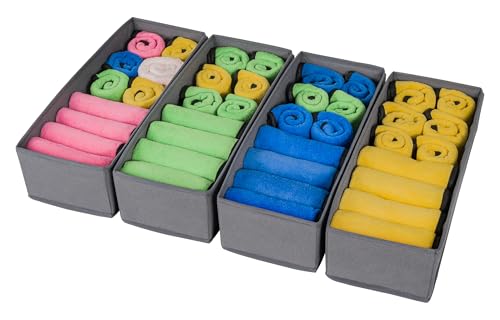 Lifewit Lådorganisering Avdelare, Set om 4 vikbara organiserare med fack Garderobsförvaring Sovrum Lådor för förvaring av strumpor, underkläder, slipsar, halsdukar. Grå