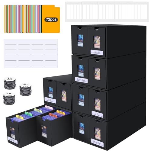 Kortlåda för 1 000+ kort, samlarkortsförvaringslådor med 72 st avdelare, etiketter och självhäftande tejp, högkvalitativa magnetiska lådor för TCG-kort