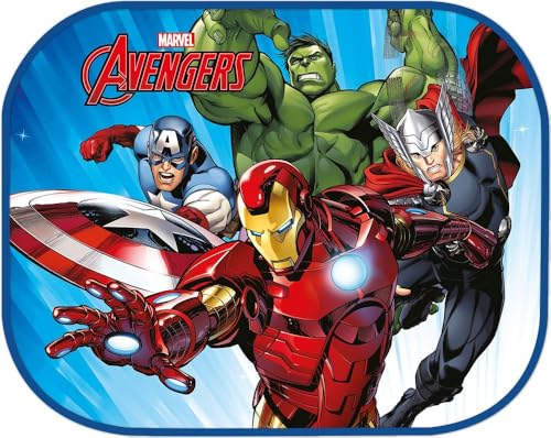 Tataway Par Marvel Avengers bilsidomarkiser 44x35 cm - Solskydd för barn med officiell Iron Man, Thor, Hulk, Captain America grafik