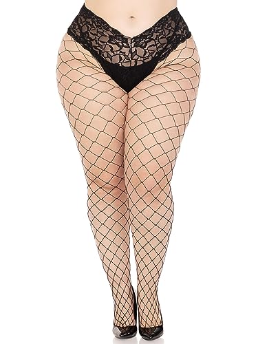 Leg Avenue Plus Größe Fischnetz Strümpfhosen Model 1404Q Übergröße Schwarz, 1er Pack