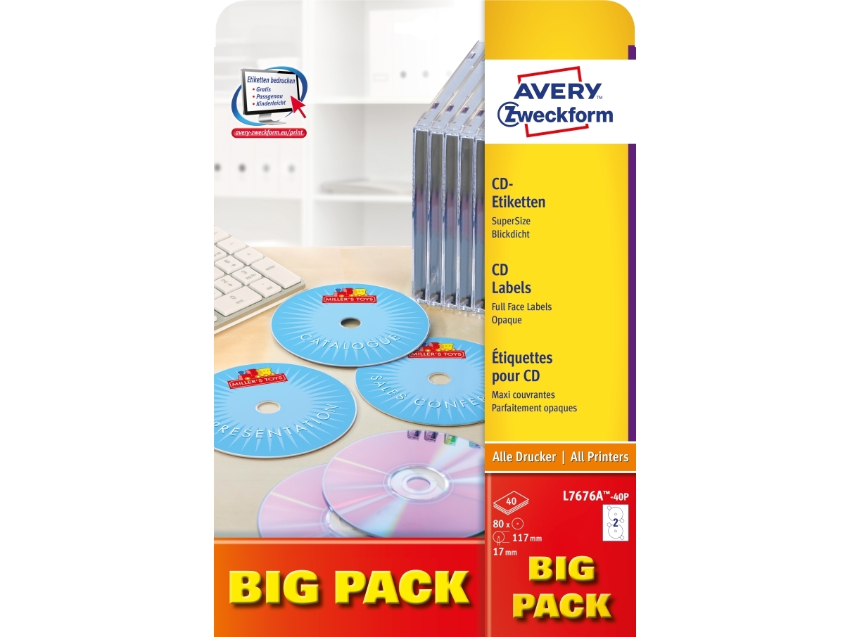 Avery Cd/Dvd Labels Classic Size - Vit - 117 Mm Rund 200 Etikett (Er) (100 Ark X 2) Cd/Dvd-Etiketter