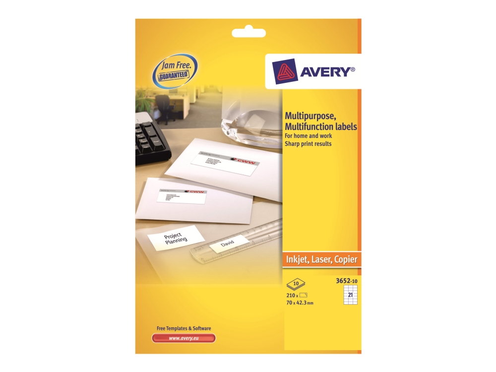 Avery Multi-Purpose Labels 3652 - Papper - Permanent Häftning - Vit - 70 X 42.3 Mm 210 Rulle (Rullar) (10 Ark X 21 Etiketter För Flera Ändamål
