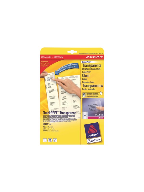 Avery L4770 - transparent address labels - 1000 pcs. - 25.4 x 45.7 mm