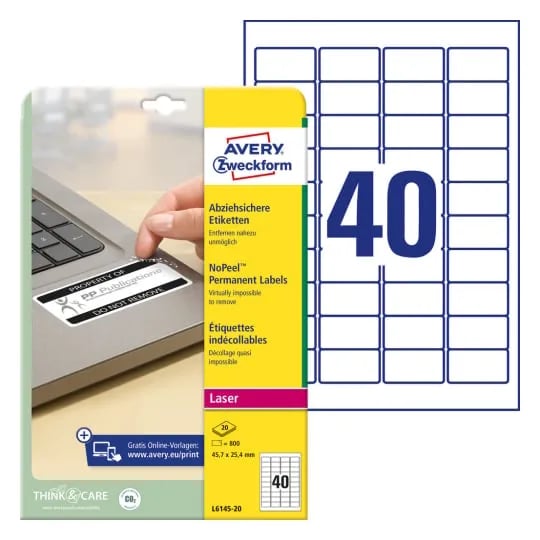 Avery Nopeel Labels L6145 - Polymer - Vit - 25.4 X 45.7 Mm 800 Etikett (Er) (20 Ark X 40) Etiketter