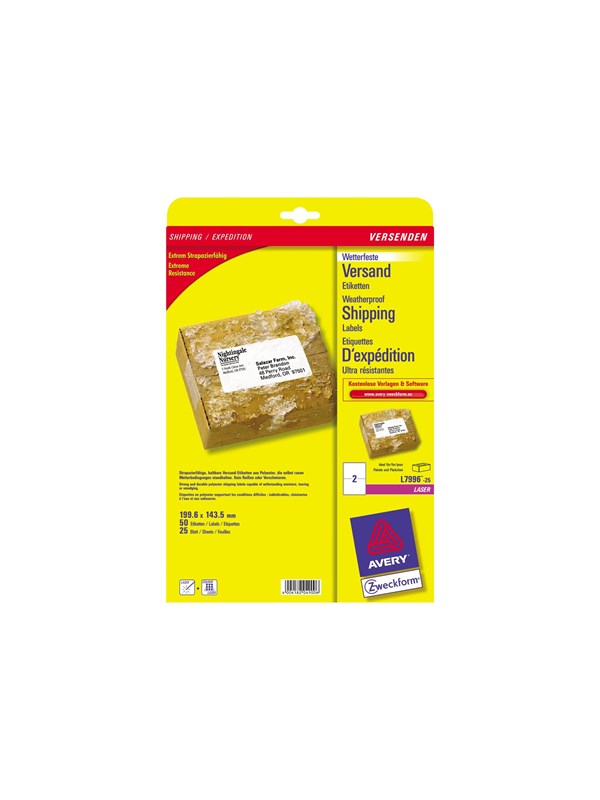 Avery Zweckform L7996 - shipping labels - 50 label(s) - 143.5 x 199.6 mm