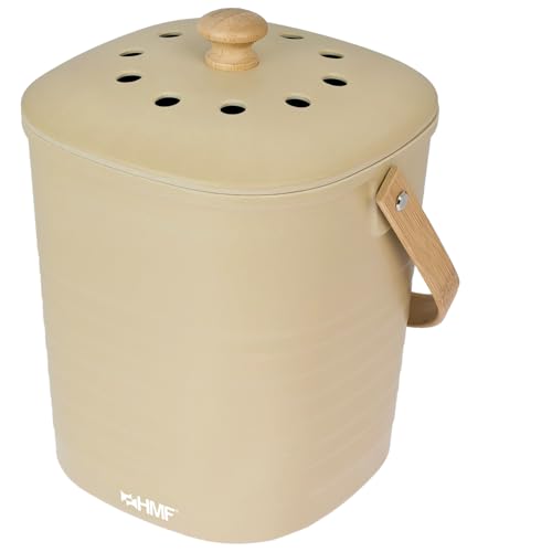 HMF hållbar organiskt avfallshink kök, luktfri komposterhink med lock | 3 liter | beige