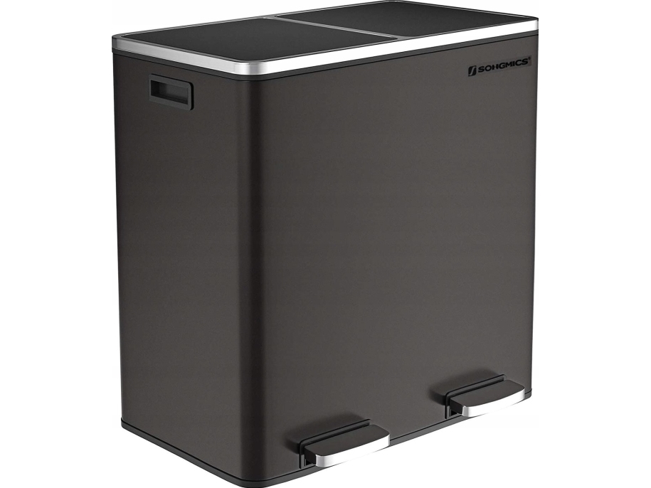 Songmics Dubbel Soptunna, 2 Köksavfalls- Och Återvinningskärl 2 X 30 L Med 15 Avfallspåsar, Metallbehållare