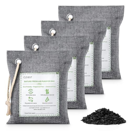 Clevast 4 x Luftrengöringspåsar bambu kol, deodorant och avfuktare, absorberar lukter, lämpliga för bil, husdjur, badrum