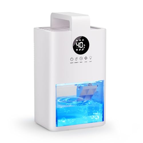 EUARY Avfuktare 2 600 ml liten avfuktare automatisk avfrostning med 7 färger nattlampa viloläge avfuktare tyst för sovrum, badrum, garderob och klädningsrum