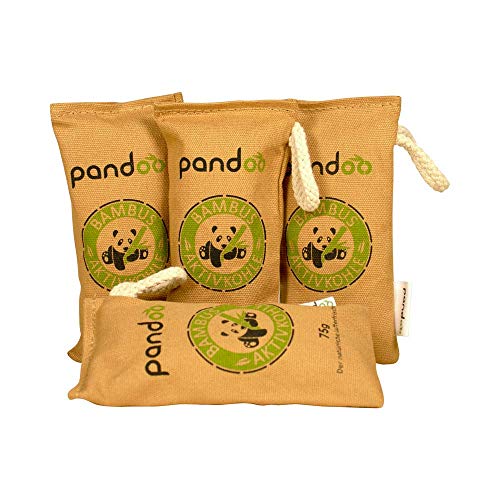 pandoo Luftfräschare av bambu naturlig med aktivt kol | luftrenare, avfuktare och luktborttagare för skor, bil, lådor, lägenhet och fodral (4 stycken vardera 75 g)