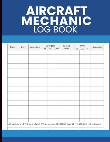 Aircraft Mechanic Log Book: Maintenance Records for Airframe, Powerplant, Avionics, and Time Documentation