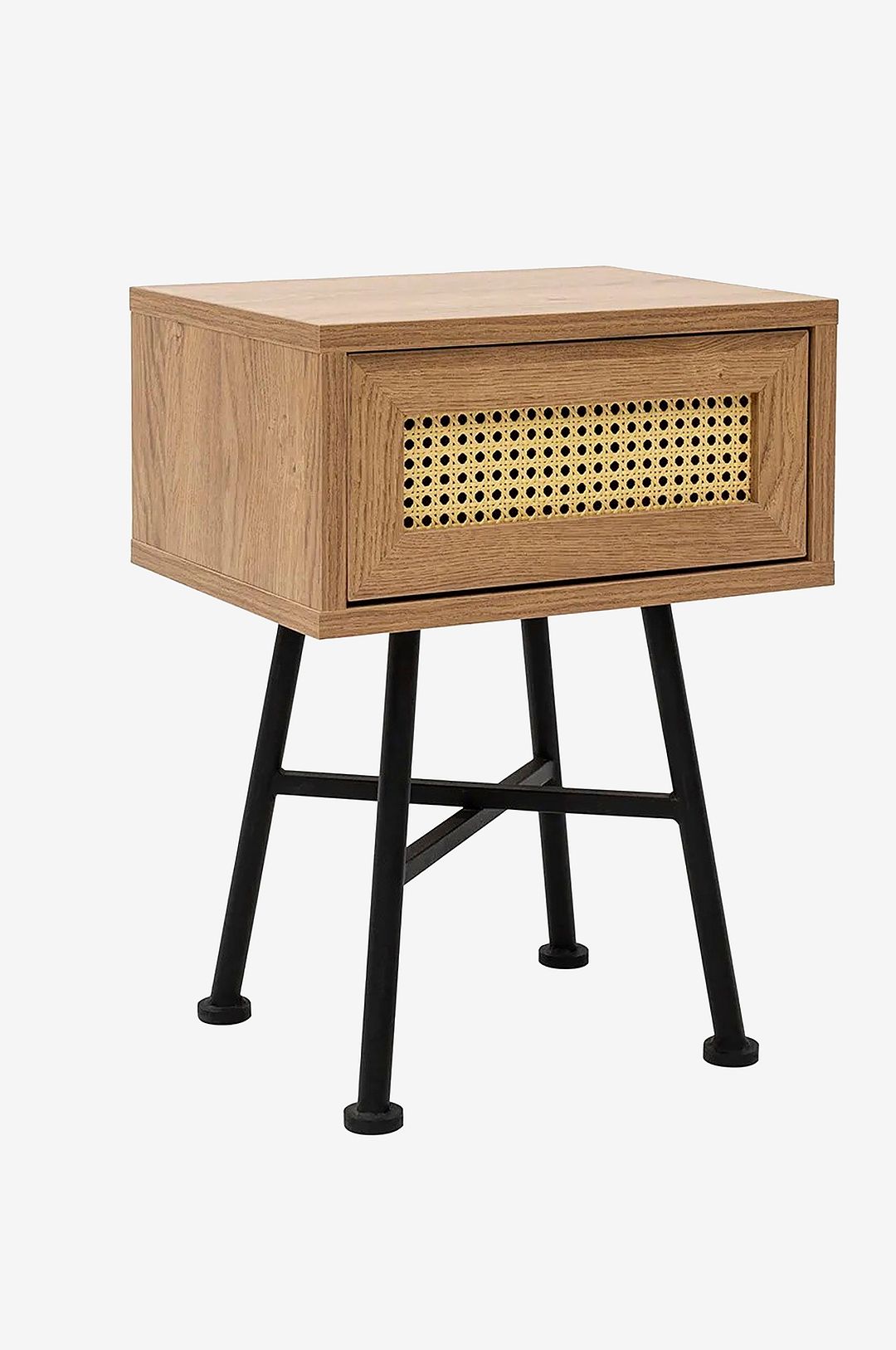 Rundat sidobord med 2 lådor - Brun / sängbord / avlastningsbord / sidobord trä
