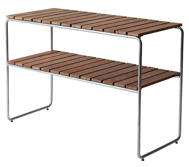 Grythyttan Stålmöbler - L105 Avlastningsbord Obehandlad teak / Varmförzinkat stativ - Småbord och sidobord utomhus - Jan-Olof Ågren,Maria Håård - Träfärgad - Metall/Trä