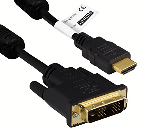 mumbi 07676 HDMI/DVI-kabel (19 pol. HDMI-A-kontakt till 18+1 DVI-kontakt), dubbel avskärmning, HDTV upp till 1080p, förgyllda kontakter, 10,0 m, svart