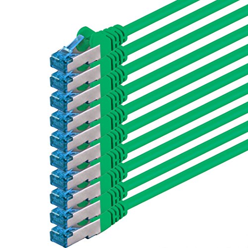 Nätverkskabel CAT6a Cat6 10 Gbit/s 3 m | grön - 10 stycken | CAT 6a | S-FTP | dubbel avskärmning