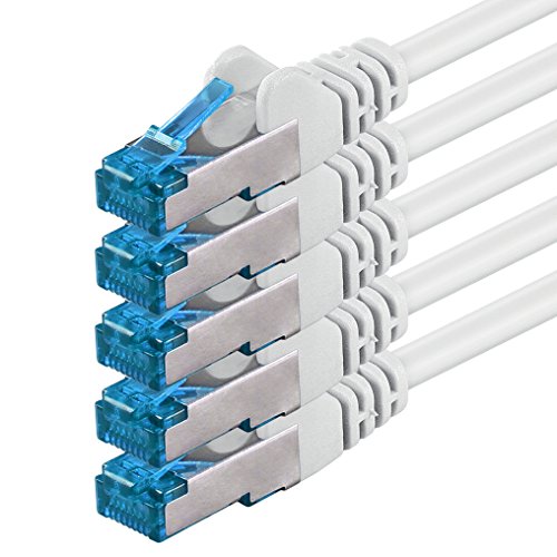 1aTTack.de Nätverkskabel CAT6a Cat6 10 Gbit/s 10 m | vit - 5 stycken | CAT6a | S-FTP | dubbel avskärmning