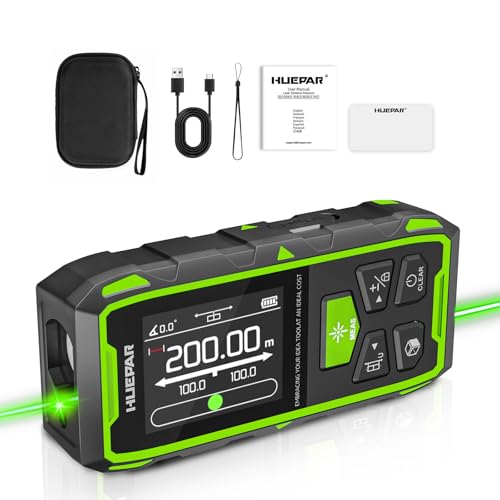 Dual Laser avståndsmätare, Huepar 200 m grön lasermätare, avståndsmätare med laser, bakgrundsbelyst LCD, mätning av avstånd, yta och volym och pythagoriskt läge