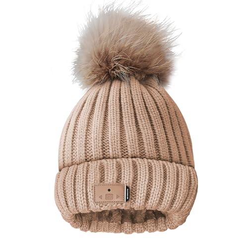 case&me Vinterhatt med trådlösa hörlurar, mjuk mössa med pompom, avtagbara trådlösa hörlurar, musik-/samtalstangenter och integrerad mikrofon, Rosa