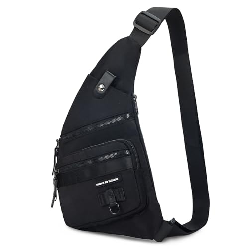 Qidelong Axelväska stöldsäker crossbody bröst axel ryggsäck kvinnor män, lätt personlig fickväska för vandring resor, Svart, One Size, ledig