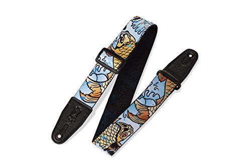Levy's Leathers Axelband till gitarr, 5 cm brett, i polyester, med ändar i äkta läder, motiv med stor koifisk (MPD2-009)