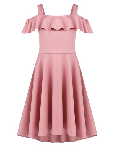 Arshiner Sommarklänning, för flickor, elegant midilång klänning för barn med axelband, ledig klänning med ficka, för 4–13 år, 11-12 år