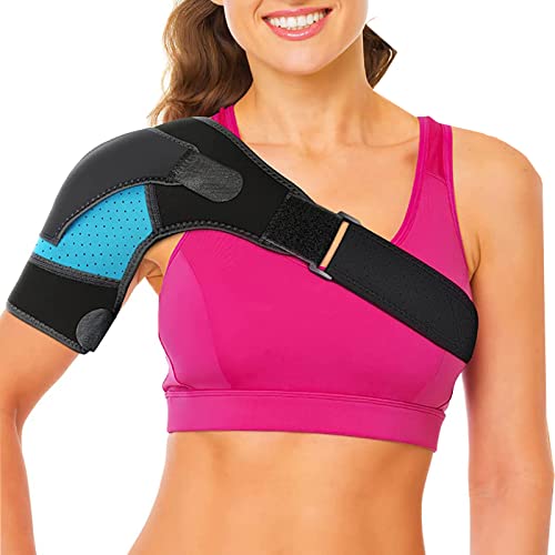 Axelbandage neopren axel stöd bandage justerbar axel stöd bandage axelstöd artritisk, axelluxation, unisex, passar både vänster eller höger axel (Blå)